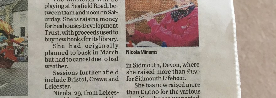 The Friday before my busk I got a call from BBC Radio Leicester who wanted to hear how I was getting on. On the Saturday I was on a flute course, so huddled in a practice room talking to the lovely presenter, Emma. It’s been great to have their support since I visited them in person in January.